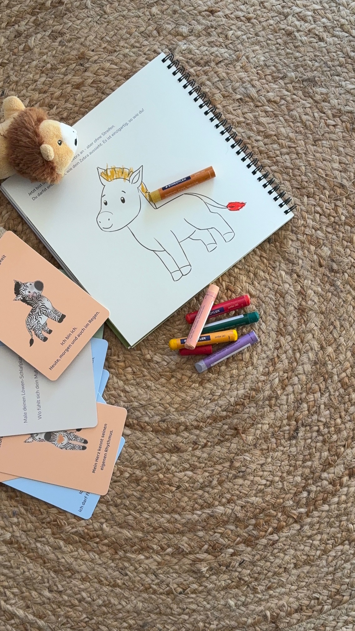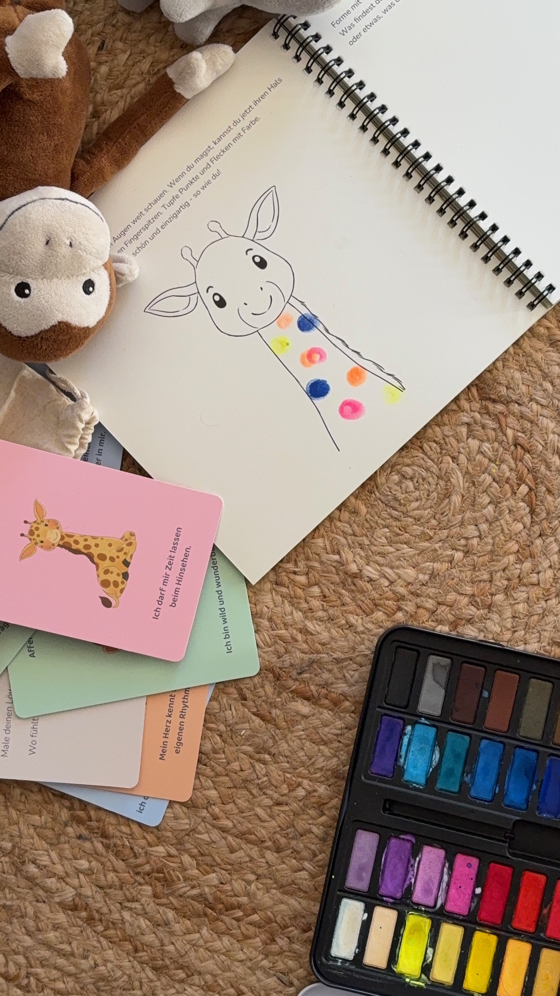 Entstanden ist dieses Set aus meiner therapeutischen Arbeit mit Kindern und Familien, aus dem, was wirklich trägt, wenn Worte fehlen und Stärken sich erst zeigen dürfen. Es wird regional gedruckt, ohne Verlag. Papier, Farben und Materialien wählen wir selbst, mit Blick auf Qualität, Nachhaltigkeit und das, was sich gut anfühlt.