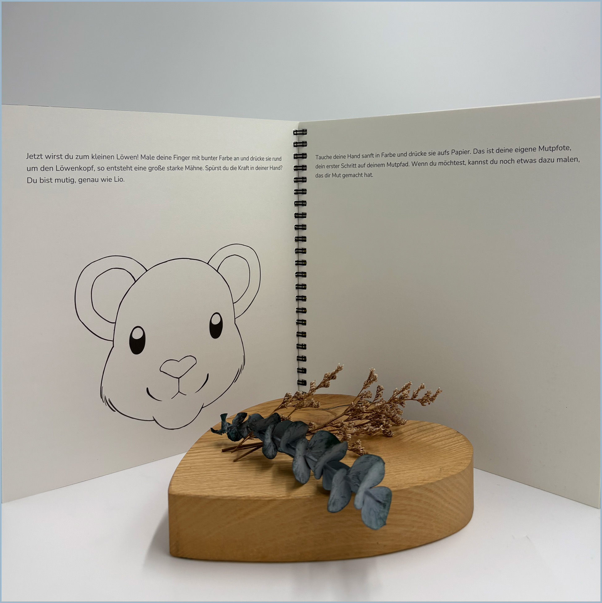 Neben den Geschichten warten liebevoll gestaltete Mitmachseiten, auf denen Kinder ihren eigenen Mutpfad gestalten können – mit Hand- oder Fußabdrücken, Farben oder kleinen Symbolen. So wird jedes Buch zu einer persönlichen Erinnerung daran, dass jedes Kind seinen eigenen Weg in sich trägt.